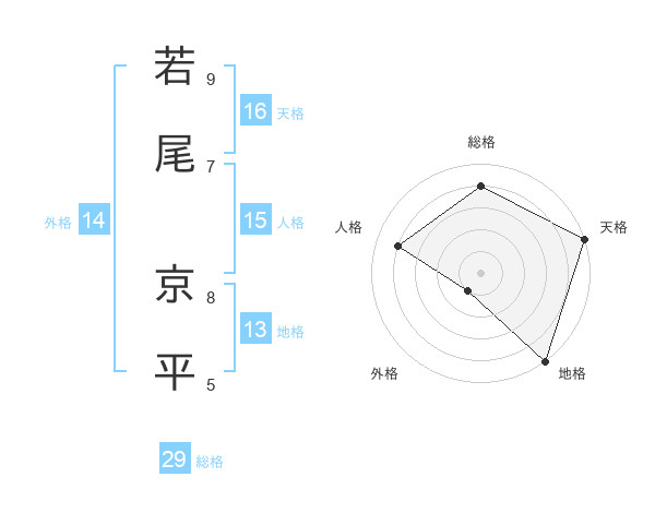 若尾 京平さんの総格は29画の4点!