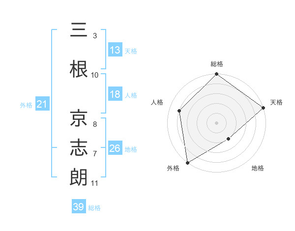 三根 京志朗さんを姓名の画数から五運を鑑定