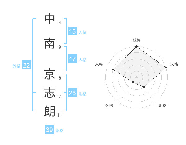 中南 京志朗さんを姓名の画数から五運を鑑定