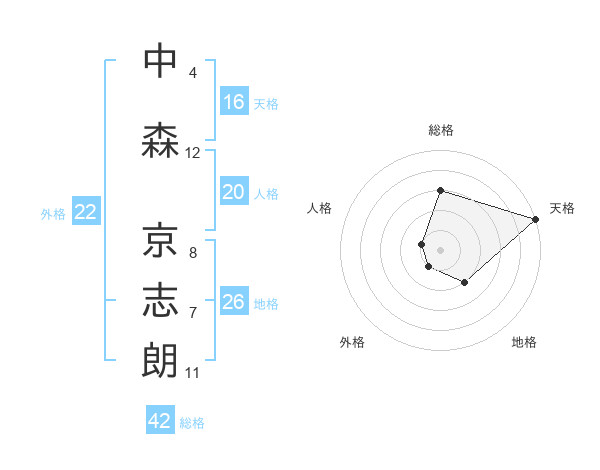 中森 京志朗さんを姓名の画数から五運を鑑定