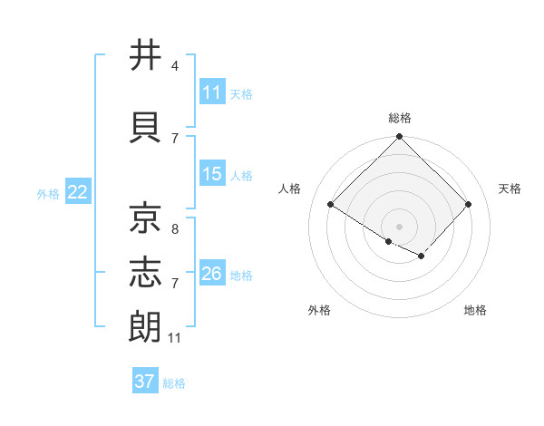 井貝 京志朗さんを姓名の画数から五運を鑑定
