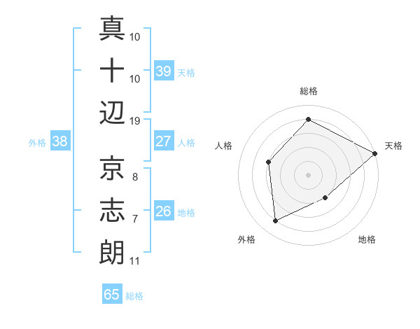 真十辺 京志朗さんの総格は65画の4点!
