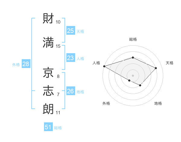 財満 京志朗さんを姓名の画数から五運を鑑定