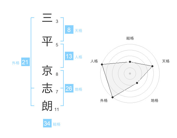 三平 京志朗さんを姓名の画数から五運を鑑定