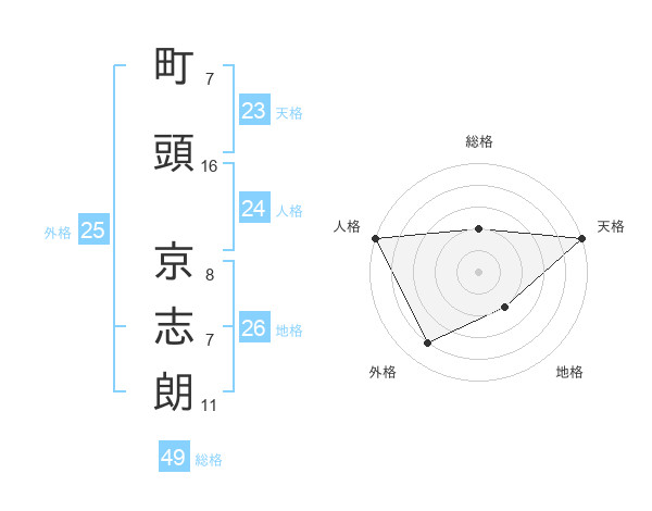 町頭 京志朗さんを姓名の画数から五運を鑑定