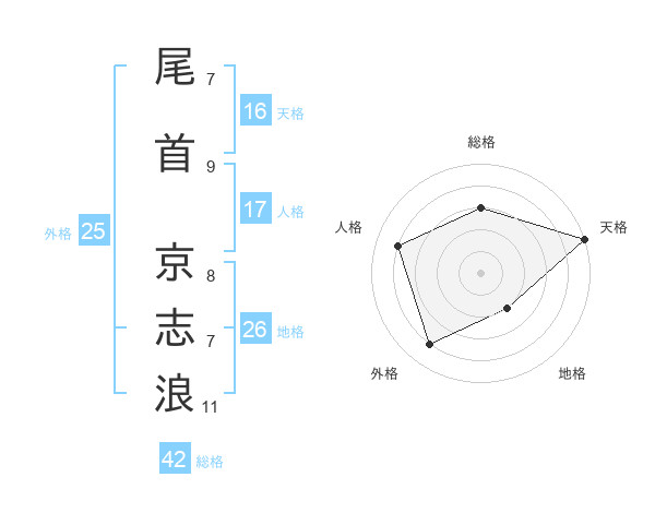 尾首 京志浪さんの天格は16画の5点!