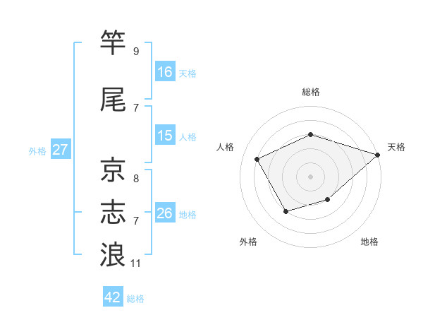 竿尾 京志浪さんを姓名の画数から五運を鑑定