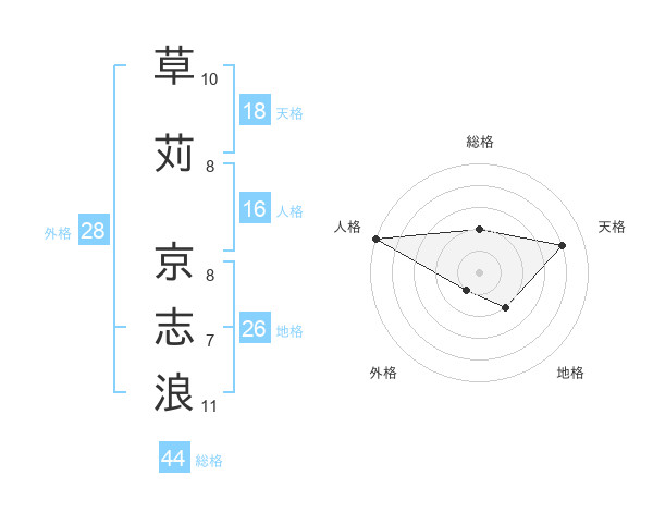 草苅 京志浪さんを姓名の画数から五運を鑑定