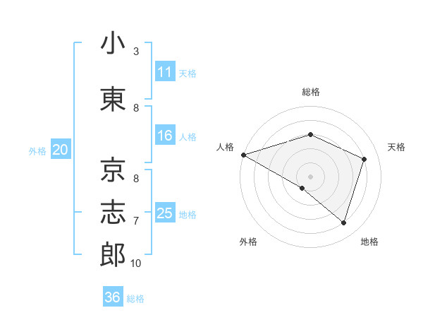 小東 京志郎さんを姓名の画数から五運を鑑定