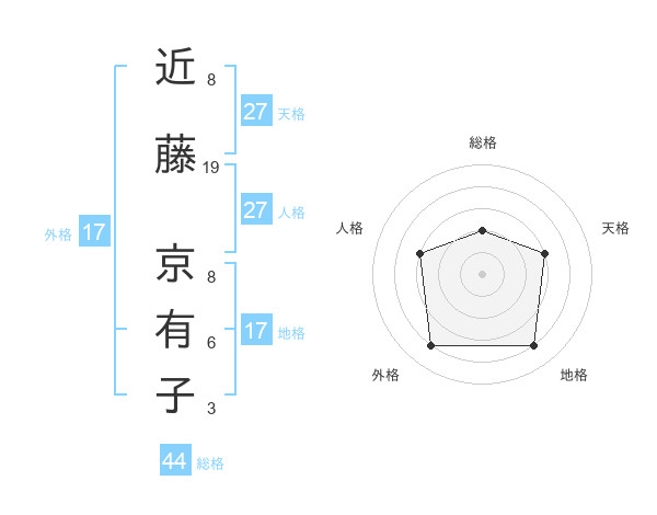 近藤 京有子さんを姓名の画数から五運を鑑定