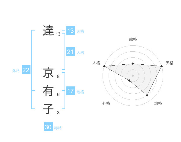 達 京有子さんの天格は13画の5点!