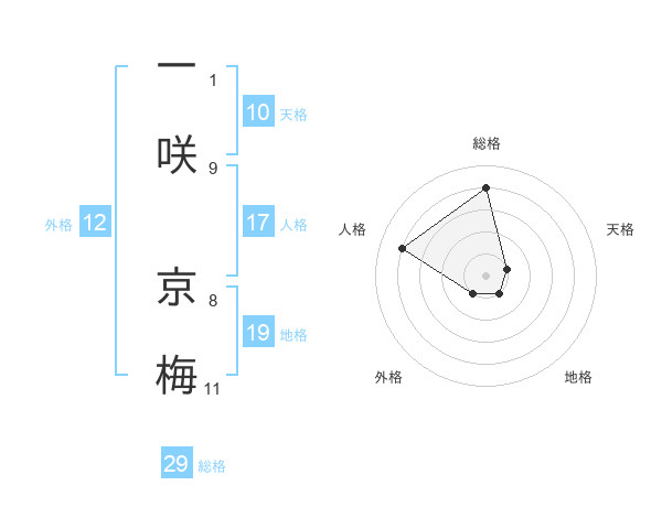 一咲 京梅さんを姓名の画数から五運を鑑定