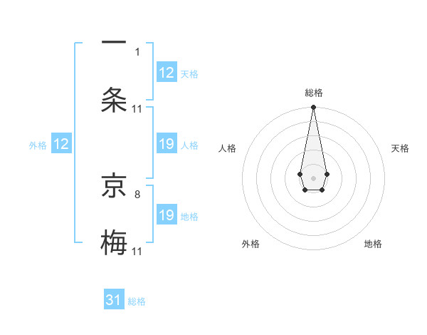 一条 京梅さんの総格は31画の5点!