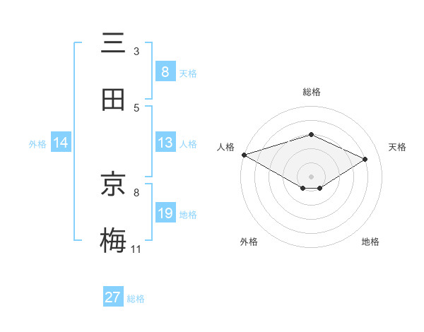 三田 京梅さんの総格は27画の3点!