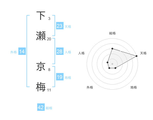 下瀬 京梅さんの天格は23画の5点!
