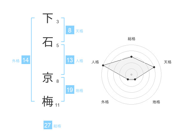 下石 京梅さんの総格は27画の3点!