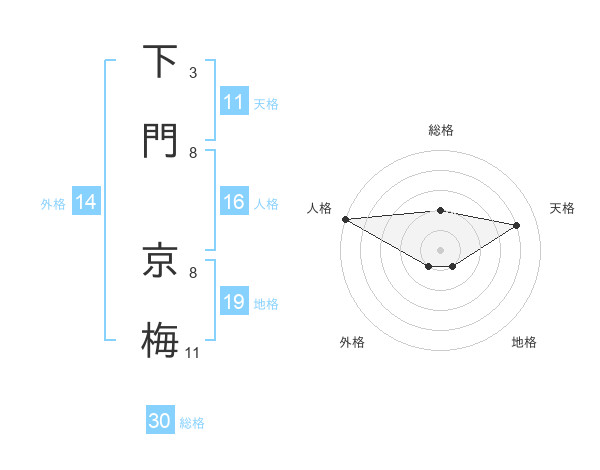 下門 京梅さんの総格は30画の2点!