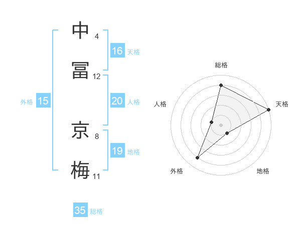 中冨 京梅さんの総格は35画の4点!