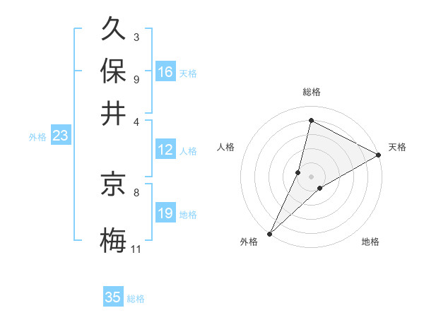 久保井 京梅さんを姓名の画数から五運を鑑定