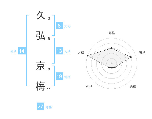 久弘 京梅さんの総格は27画の3点!