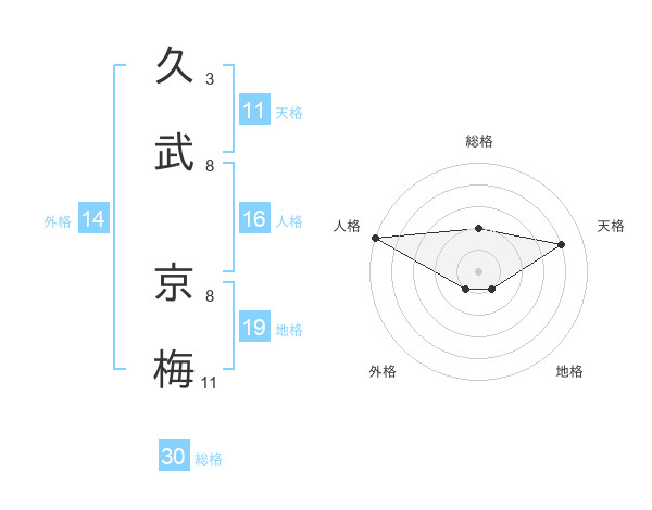 久武 京梅さんの総格は30画の2点!