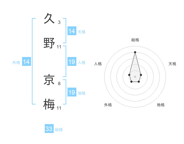 久野 京梅さんの総格は33画の4点!