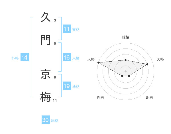 久門 京梅さんの総格は30画の2点!
