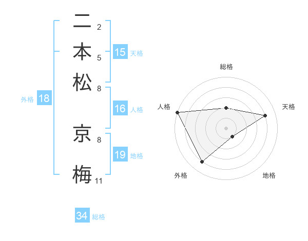 二本松 京梅さんを姓名の画数から五運を鑑定