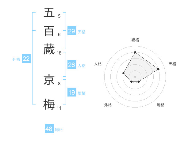 五百蔵 京梅さんを姓名の画数から五運を鑑定