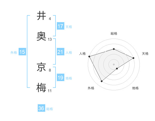 井奥 京梅さんを姓名の画数から五運を鑑定