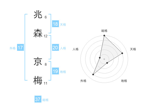 兆森 京梅さんを姓名の画数から五運を鑑定