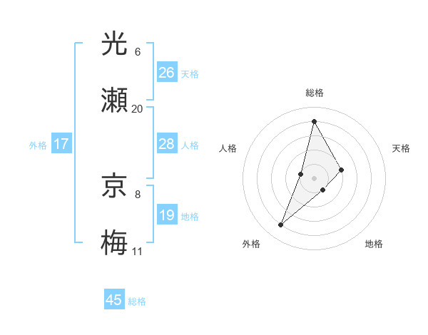 光瀬 京梅さんの総格は45画の4点!