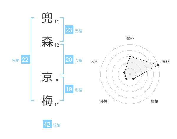 兜森 京梅さんを姓名の画数から五運を鑑定