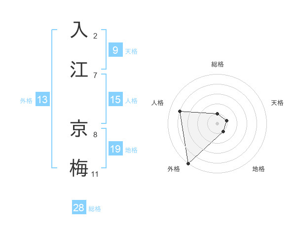 入江 京梅さんの外格は13画の5点!
