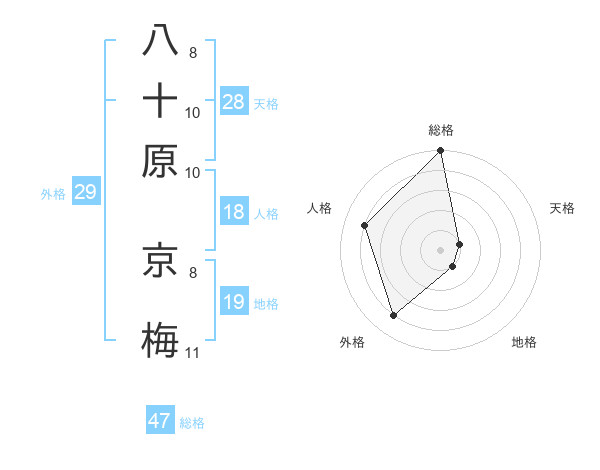 八十原 京梅さんを姓名の画数から五運を鑑定