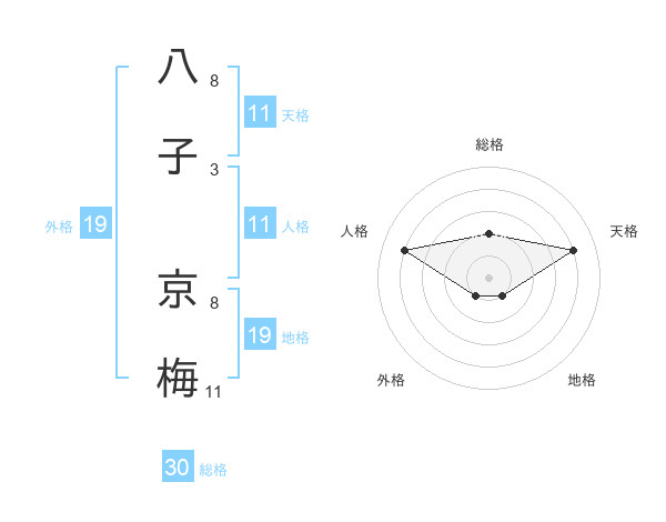 八子 京梅さんの総格は30画の2点!