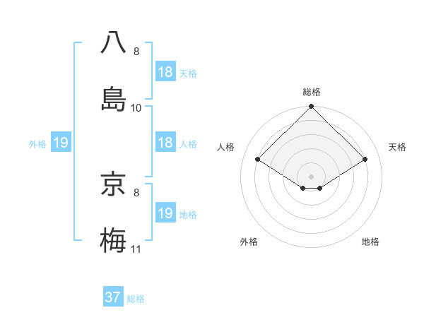 八島 京梅さんの総格は37画の5点!