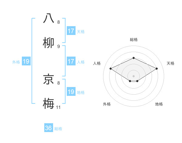八柳 京梅さんの総格は36画の3点!