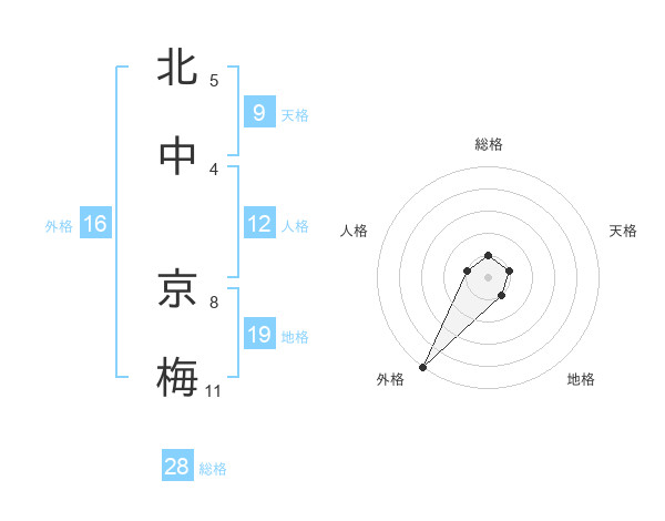 北中 京梅さんの総格は28画の1点!