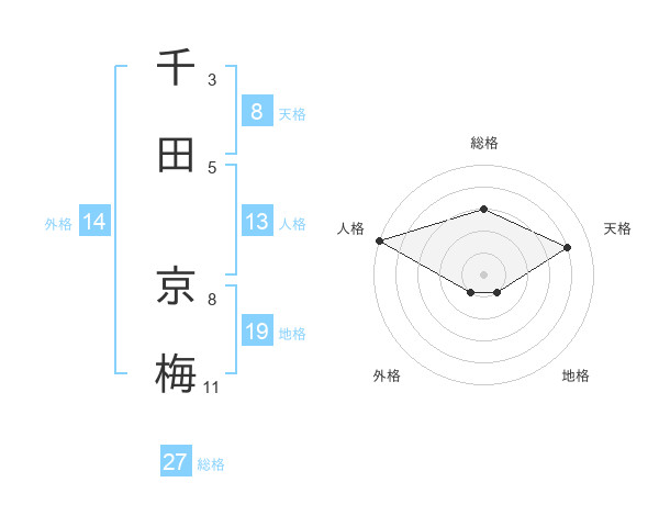 家系が持つ宿命的な運勢を表します。祖先から受け継いだ苗字ですので自分の力が及びません。家柄を象徴します。