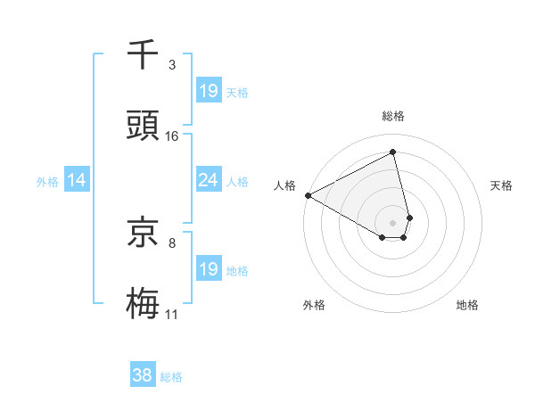 千頭 京梅さんの総格は38画の4点!