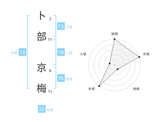卜部 京梅さんを姓名の画数から五運を鑑定