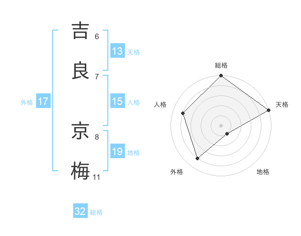 吉良 京梅さんを姓名の画数から五運を鑑定