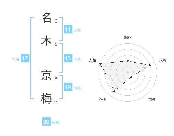 名本 京梅さんの総格は30画の2点!