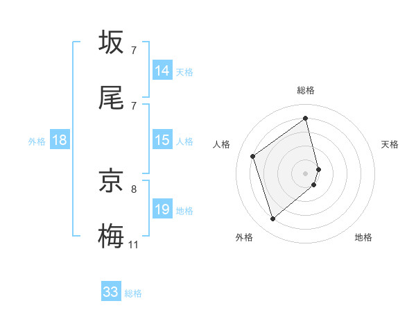 坂尾 京梅さんの総格は33画の4点!