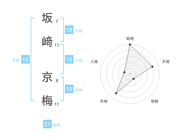 坂﨑 京梅さんの総格は37画の5点!