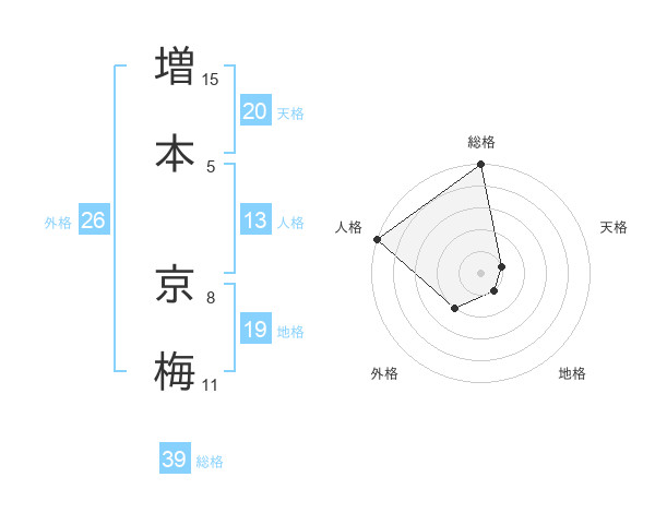 増本 京梅さんの総格は39画の5点!