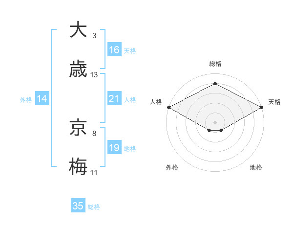 大歳 京梅さんの天格は16画の5点!