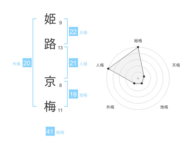 姫路 京梅さんの総格は41画の5点!