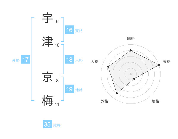 宇津 京梅さんの総格は35画の4点!